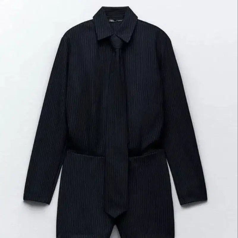 새상품급 다크 네이비 핀스트라이프 점프수트 넥타이 XS