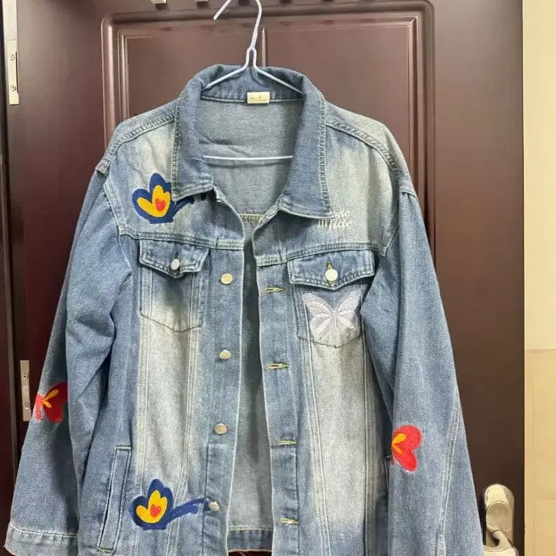 꽃무늬 자수 데님 자켓 오버 사이즈