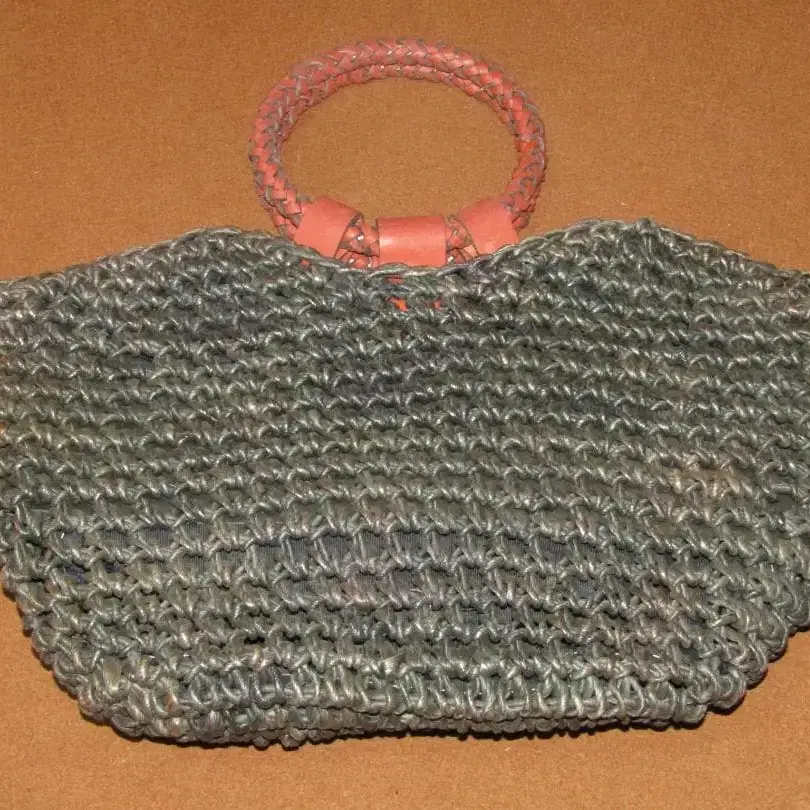 [ 새상품급 끈으로 짠 가죽 손잡이 백 그레이 ] 제조사 불명