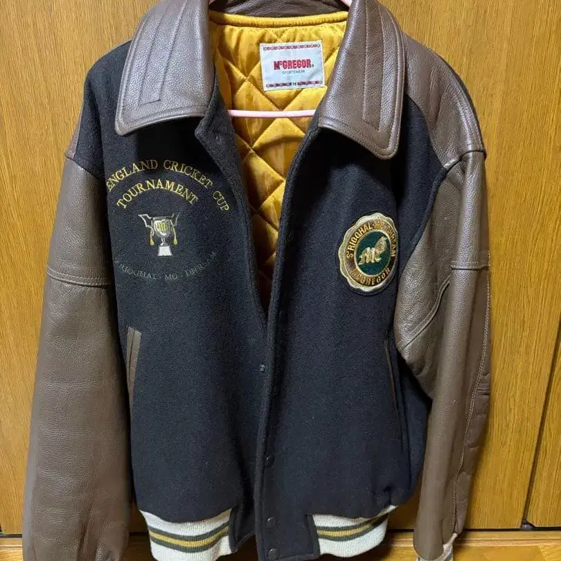 McGREGOR(맥레거) 울 소 가죽 절개 바시티 자켓