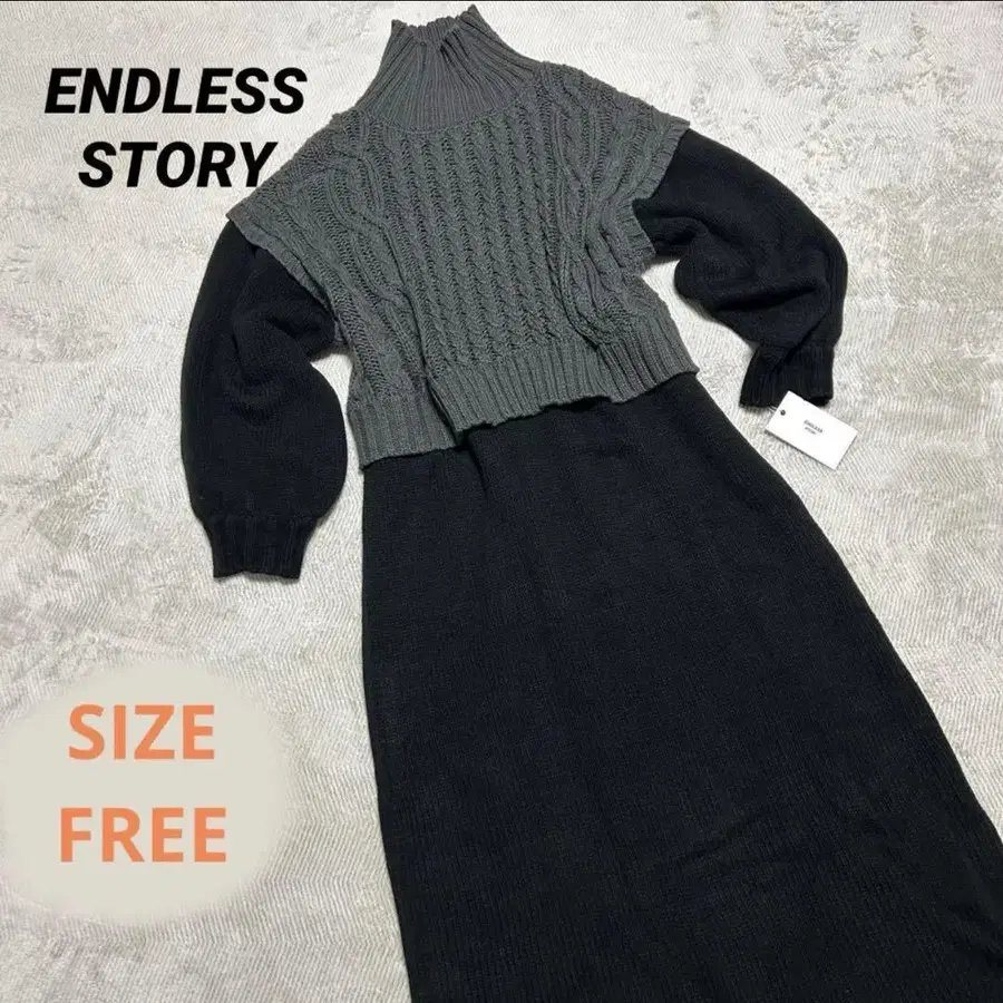 미사용 ENDLESS STORY 니트 롱 원피스 도킹 원피스