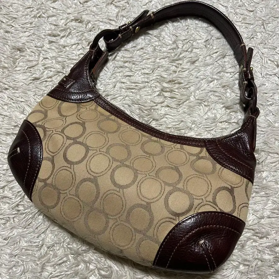 새상품급 genten 핸드백 액세서리 파우치 올 패턴 브라운 계열 가죽