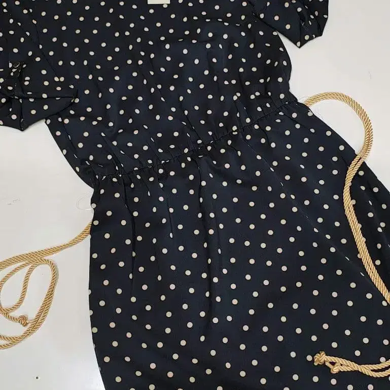 미사용 새상품 택 포함 자유구 도트 무늬 네이비 원피스 벨트 포함