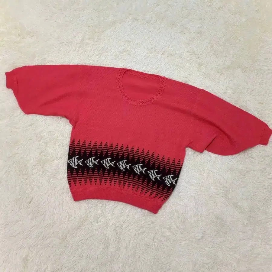 빈티지 니트 스웨터 핑크 엔젤피쉬 물고기 패턴 레트로 개성있는