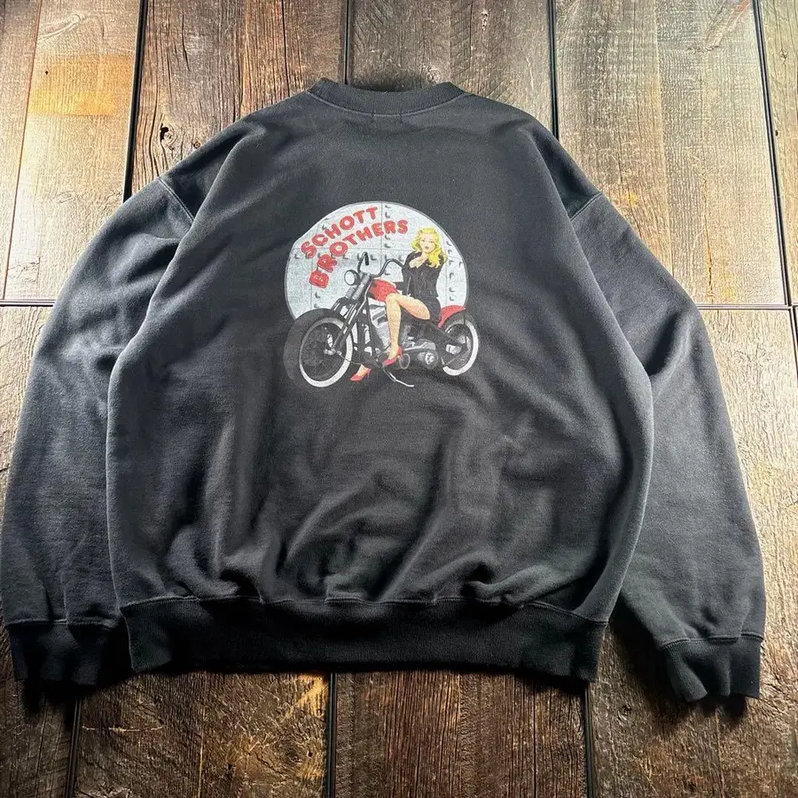 구제 의류 샷 양면 프린트 맨투맨 XL 블랙 와이드 소매 오버 사이즈