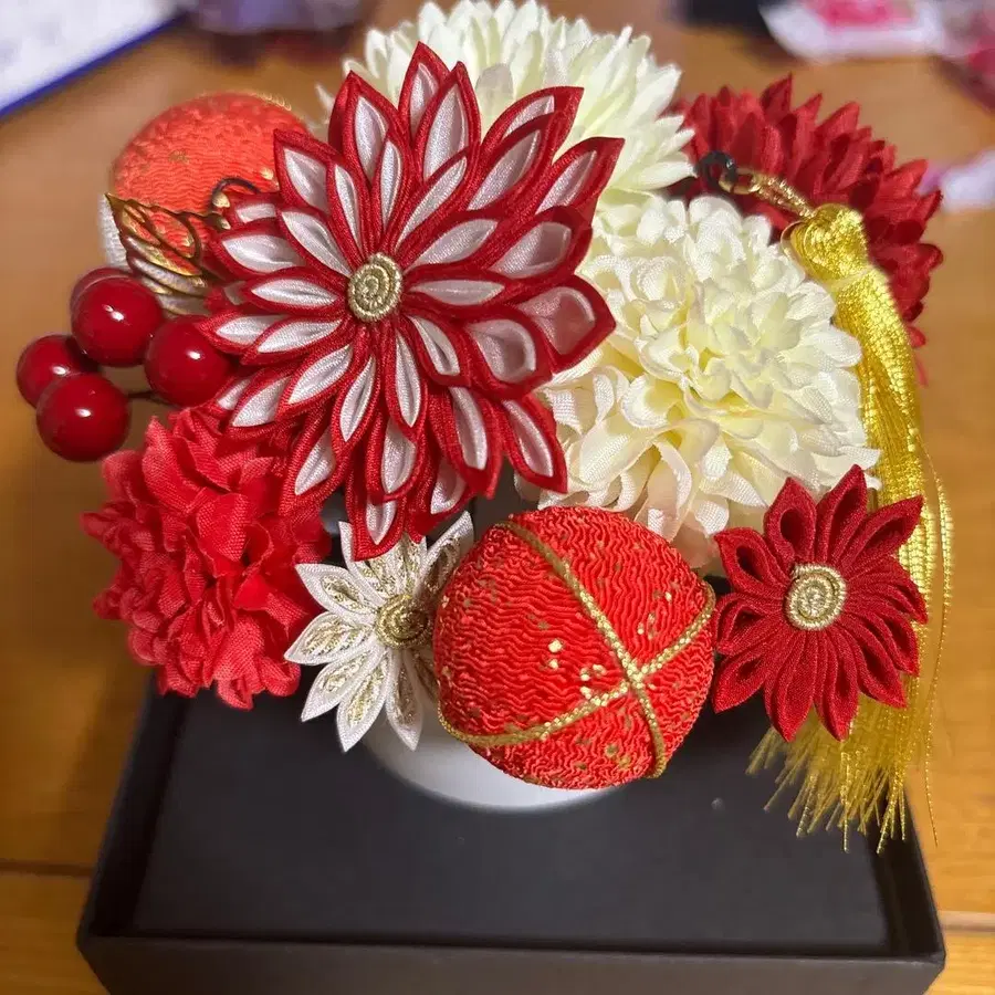 성인식 일본 의류 머리 장식 빨흰 꽃 공 15점