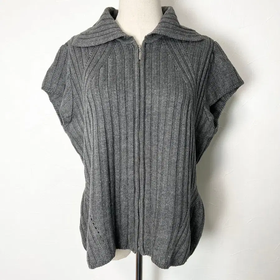 자동 번역되었어요. 원문보기새상품급 세시오セラ 지퍼 반팔 니트 그레이 44/XL 빅 사이즈 고급