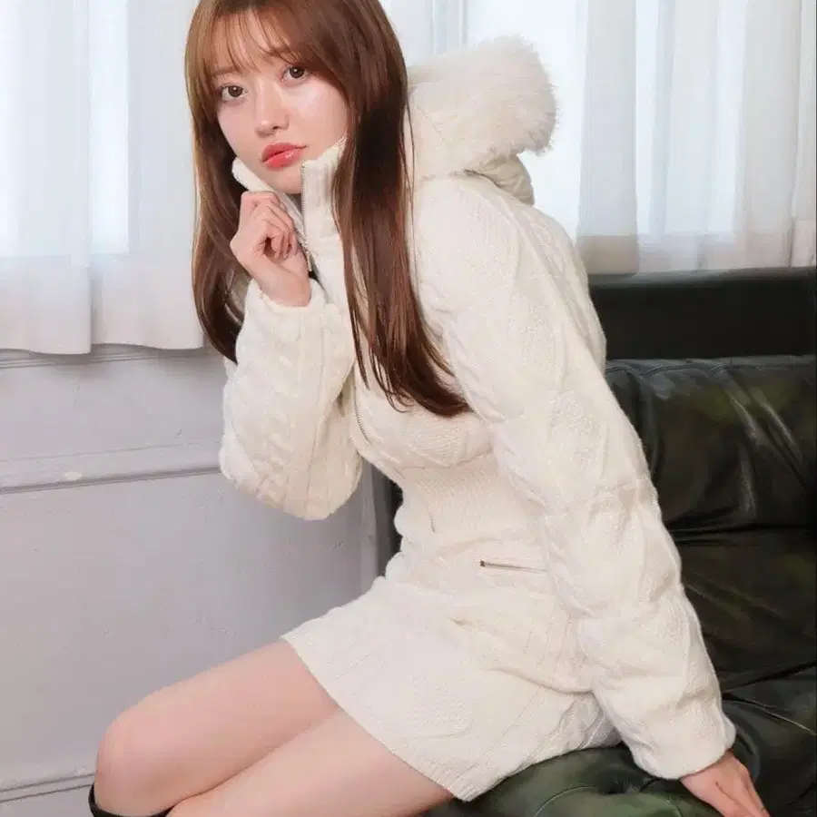 LIPSERVICE 웜 케이블 니트 패딩 자켓 아이보리 M 사이즈