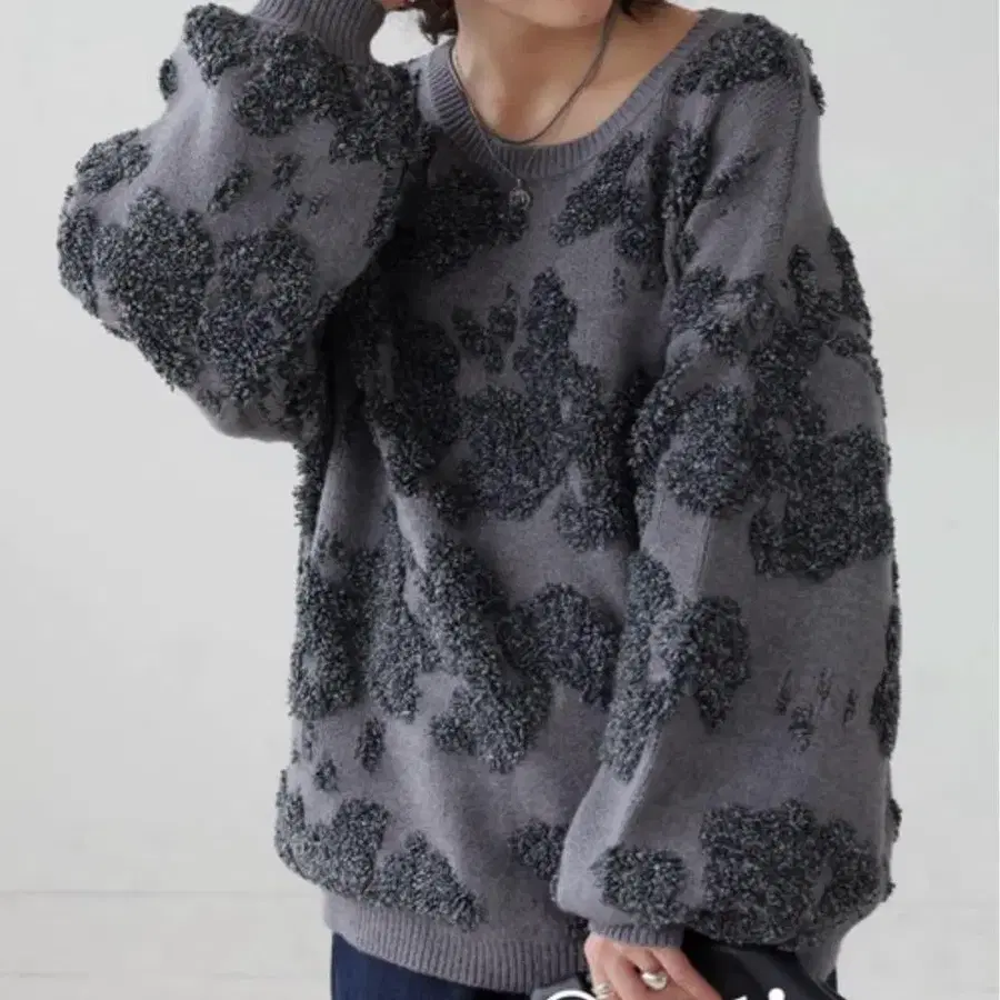 antiqua 뉴앙스 볼륨 슬리브 그레이 니트 스웨터