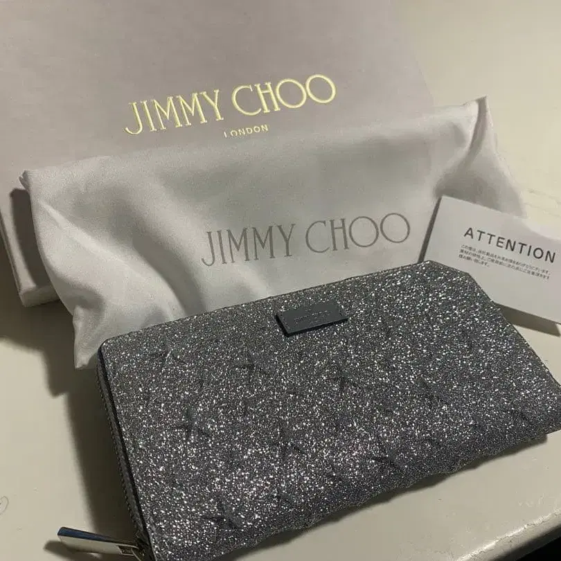JIMMYCHOO 지미추 장지갑 카나비 S 실버 글리터 가죽