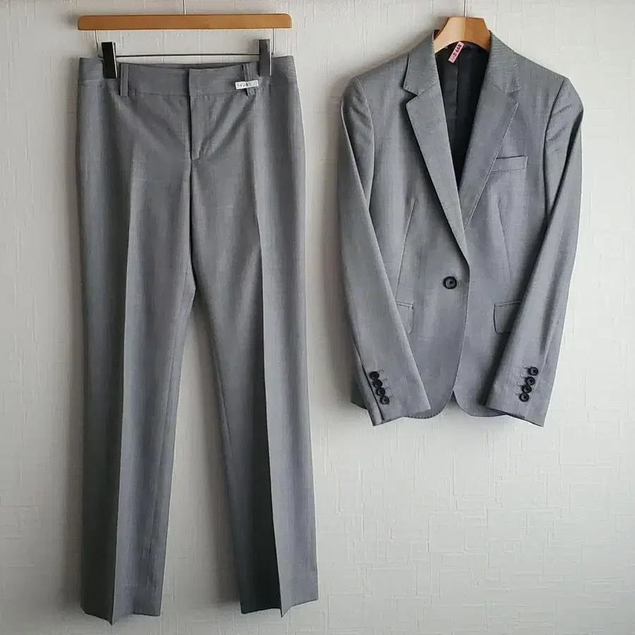 언타이틀 팬츠 수트 셋업 그레이 섀도우 스트라이프