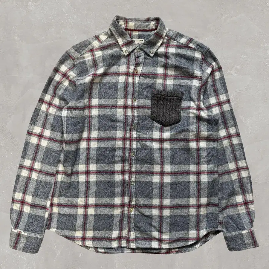 • GUY ROVER 그레이와 화이트 체크 무늬 긴팔 셔츠 L