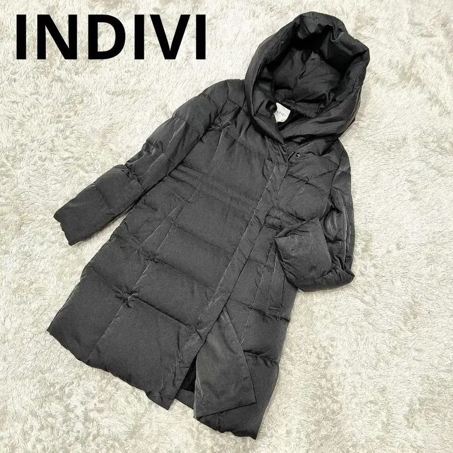 미 실루엣 INDIVI 다운 코트 광택감 후드 롱 38 M