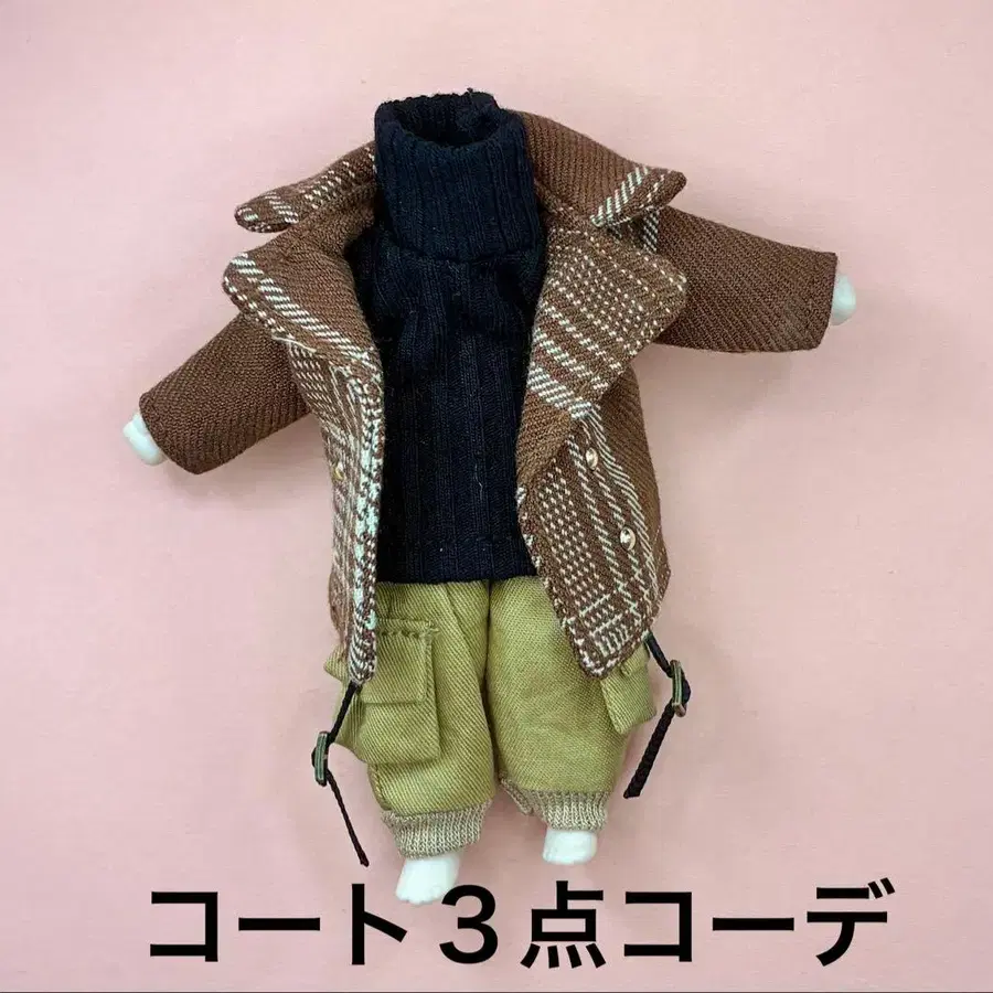 오비츠11 넨도로이드 코트 하이넥 팬츠 브라운 체크 블랙