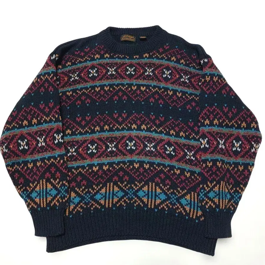 80s 90s 에디 바우어 총무늬 코튼 니트 XL 노르딕