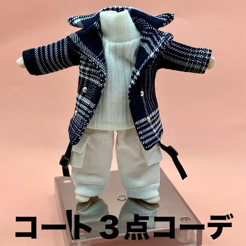 오비츠11 넨도로이드 코트 하이넥 팬츠 네이비 체크 화이트