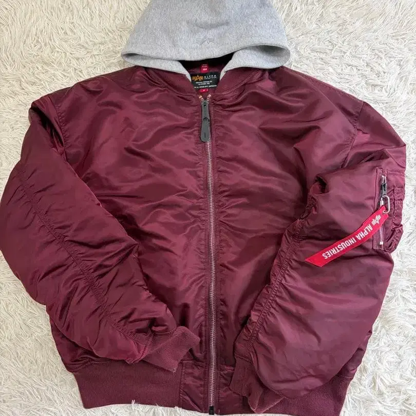 [ 미사용급 ] 알파인더스트리 MA-1 후드 부착 버건디 M 사이즈