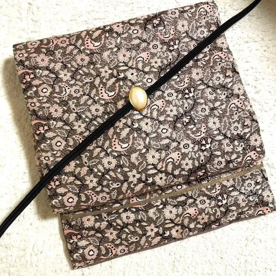 빈티지 순수 실크 나고야 오비 흑먹색 x 핑크의 반짝이는 꽃동산