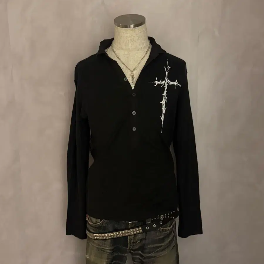 y2k 그런지 헤이세이 갸루 펑크 락 시크 스타일 십자가 기믹 페인트