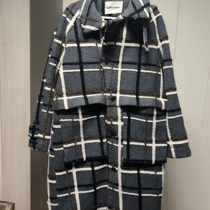 [ 새상품급 ] HENRIK VIBSKOV 체크 울 코트 블루 그레이