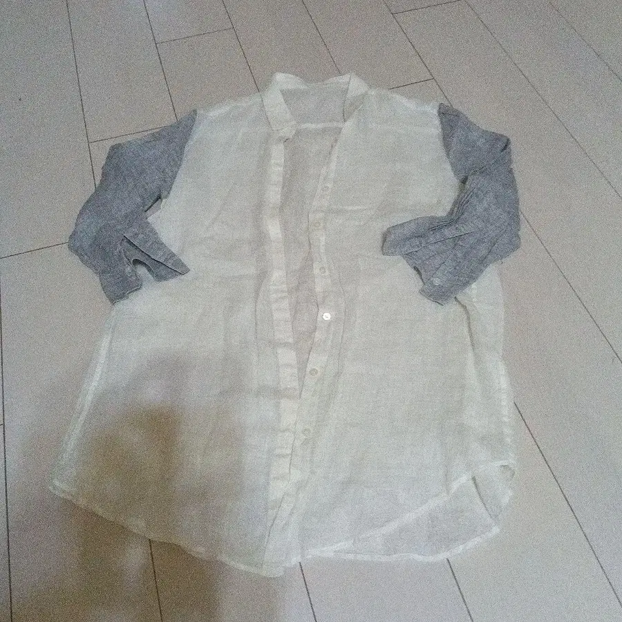 린넨 칠부 소매 셔츠 화이트와 그레이