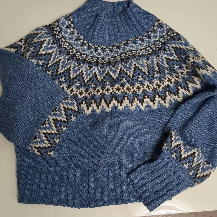 프릭스스토어 노르딕 하이넥 숏 기장 니트 풀오버 블루