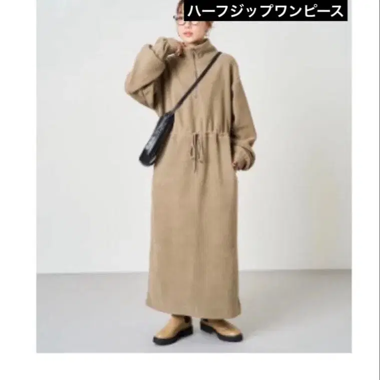 FREAK'S STORE 플리스 하프 지퍼 롱 원피스 베이지
