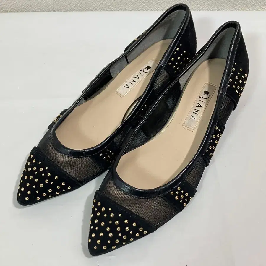 자동 번역되었어요. 원문보기스터드와 메쉬 소재 디자인이 특징인 DIANA의 플랫슈즈.