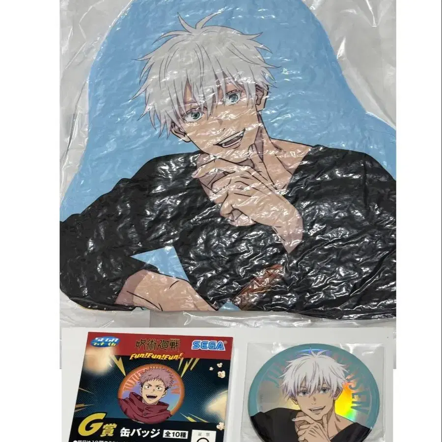 Fun!Fun!Fun! 세가 럭키 쿠지 고죠 사토루 쿠션 + 캔뱃지 세트