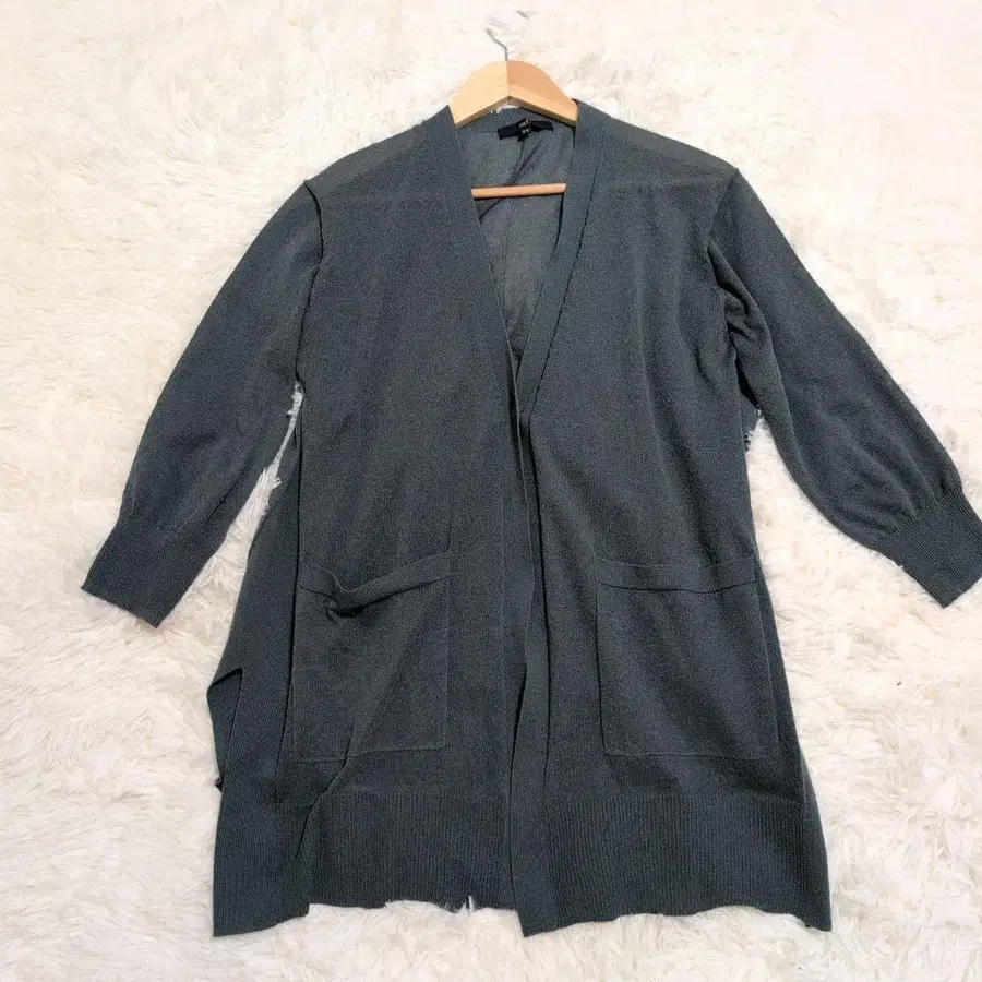 오픈 프론트의 그레이 긴팔 가디건, 포켓 부착으로 편리합니다.