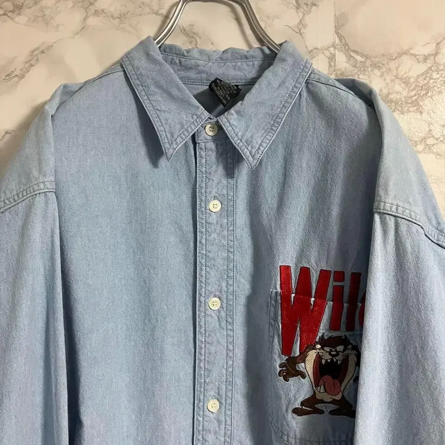 [캐릭터 자수] 루니툰 태즈메이니아 데빌 코튼 셔츠 블루 L