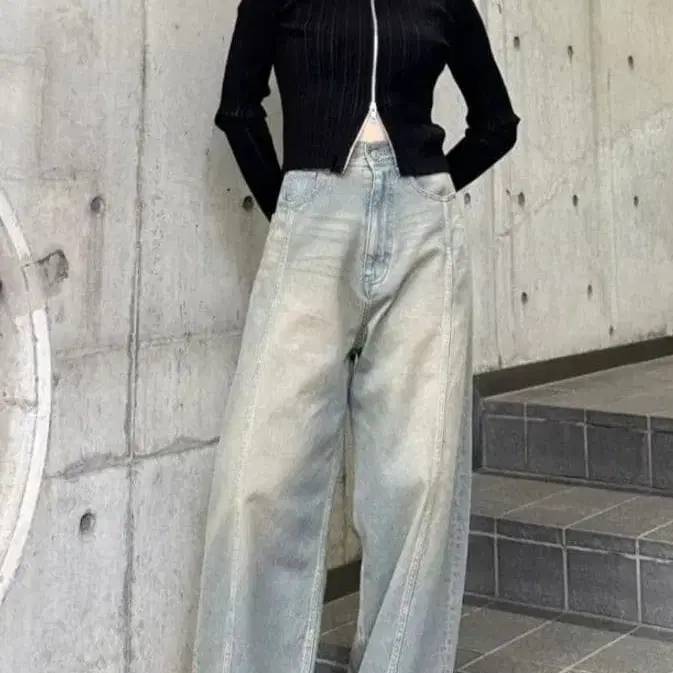 MURUA 배럴 레그 코쿤 실루엣 데님 블루