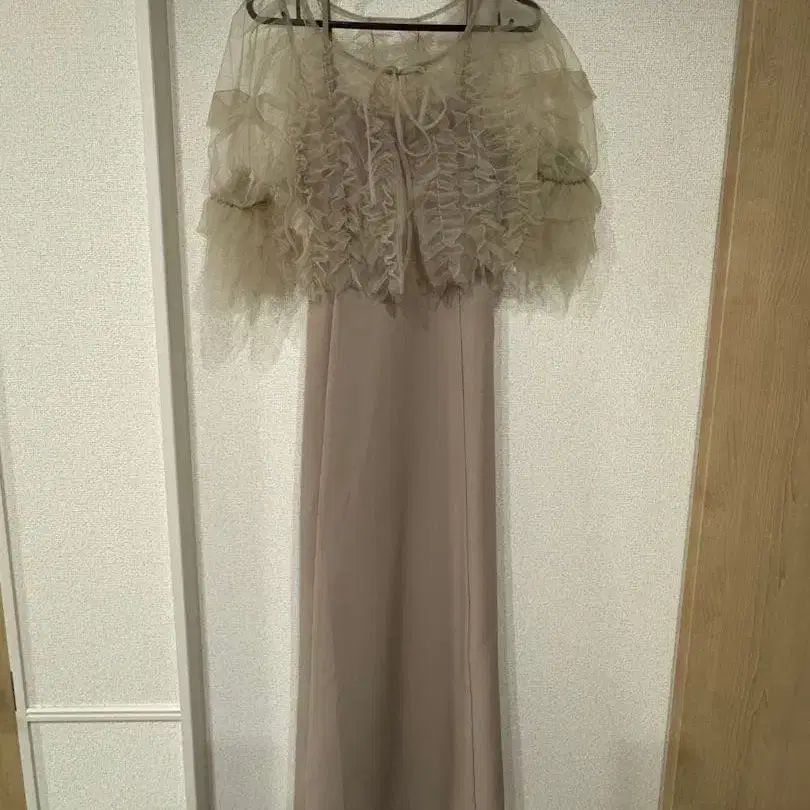 MELLOWNEON 프릴 달린 베이지 롱 드레스