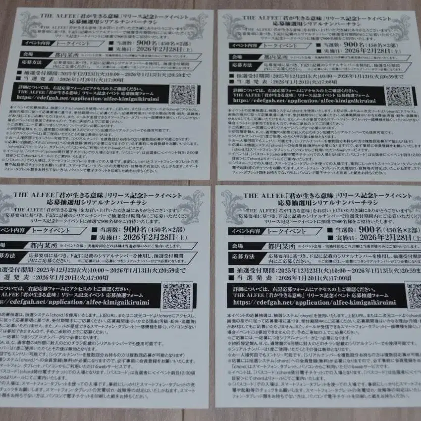 THE ALFEE 네가 살아가는 의미 응모권 4장 세트