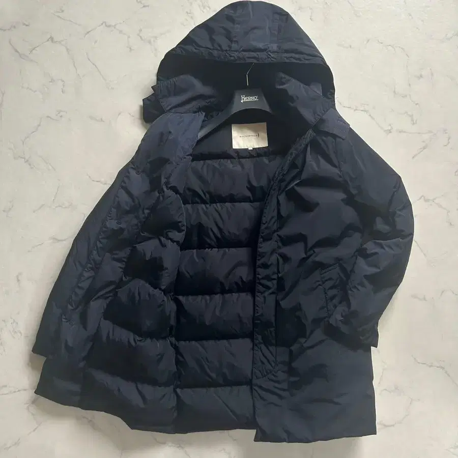 컨디션 최상 매킨토시 다운 코트 후디 히요쿠 버튼 38 M 네이비 컬러