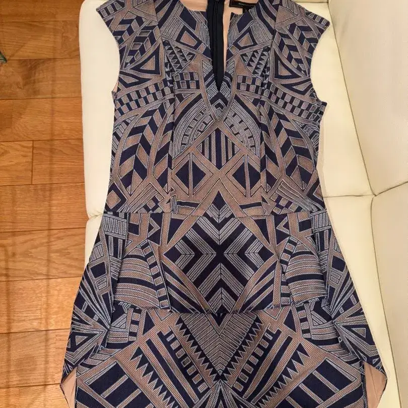 BCBGMAXAZRIA 기하학 패턴 슬리브리스 원피스 사이즈 XS