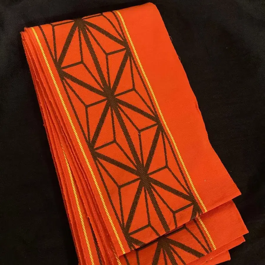 하카타 오리 린넨 아사노하 패턴 자수 반폭 오비