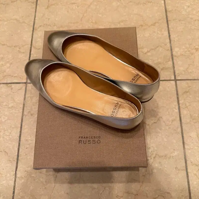 FRANCESCO RUSSO 실버 플랫슈즈 37 사이즈