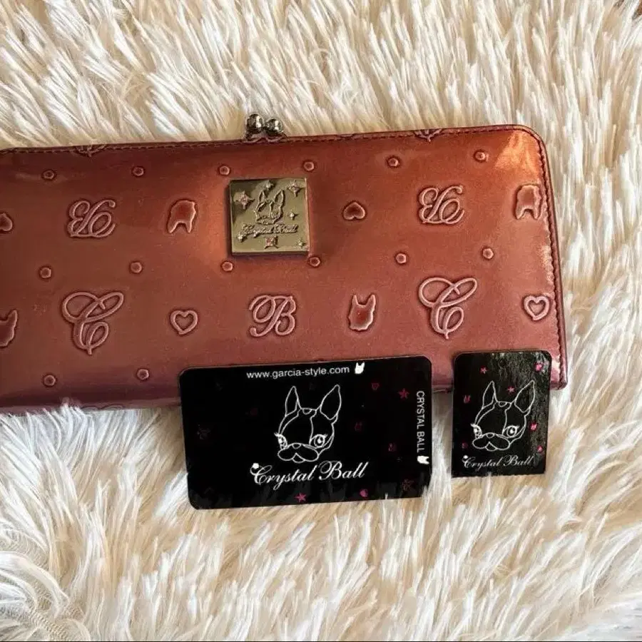 새상품급 Crystal Ball 크리스탈 볼 가마구치 장지갑 베이지 레드