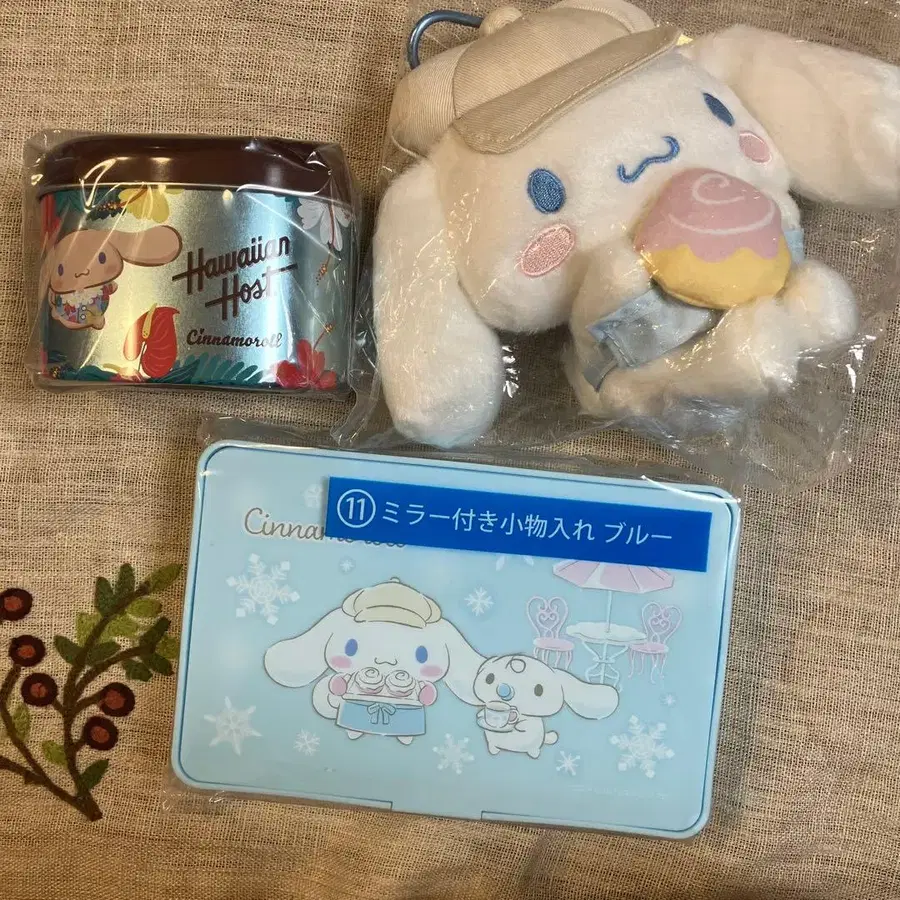 하와이안호스트 시나모롤 초코 통 봉제 인형 거울 포함 소품함