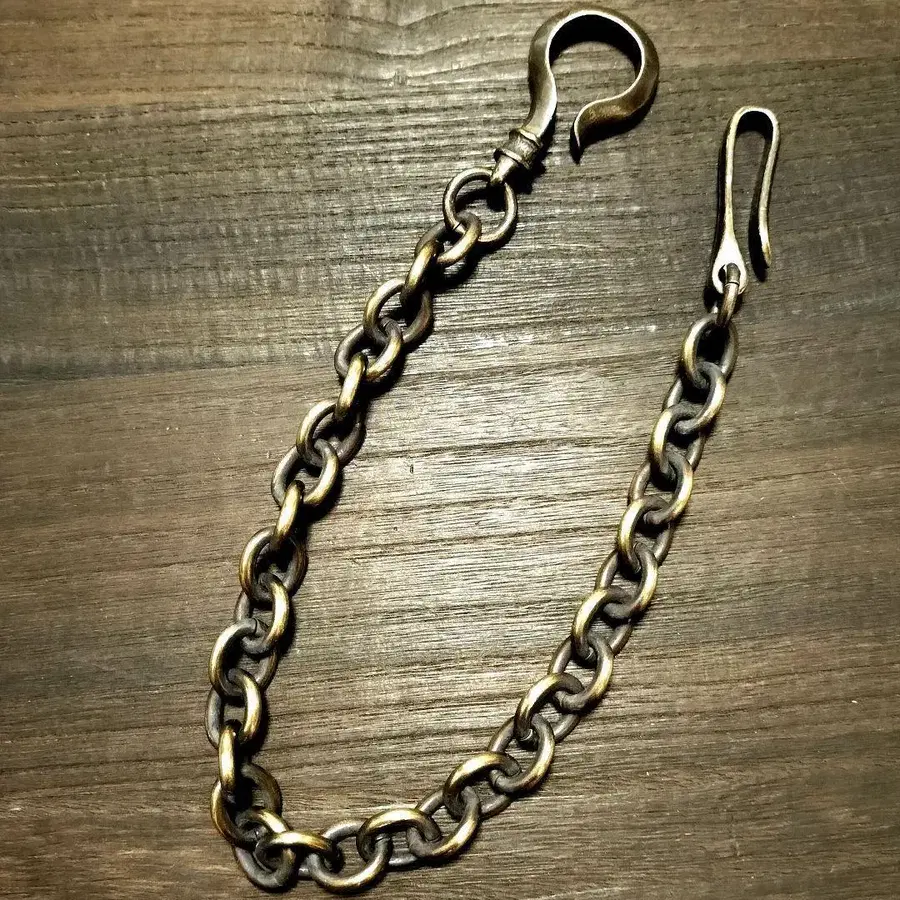 기타 지갑 체인 판매 중입니다. #RiRi체인 둥근 코인 체인이 특징인 오리지널 지갑 체인입니다. 아메카지, 힙합, 스트릿, 펑크, 바이커 등 트래커 체인, 다양한 용도로 활용 가능합니다. 아연 합금과는 다른, 실버 925와는 또 다른 고급스러움. 꾸준히 사용하면 경년 변화로 시간이 지남에 따라 자신만의 색감으로 변해가는 것을 즐길 수 있습니다 ♪ [ 소재 ] 놋쇠 [ 사이즈 ] 전체 길이 45cm 체인 폭 13mm 둥근 후크 5.5cm 낚시바늘 후크 4.5cm [ 중량 ] 139g [ 발송 ] 구매 후 24시간 이내에 유패킷으로 발송합니다. [ 주의 사항 ] 놋쇠의 특성상 약간의 변색이나 색상 불균일 등이 있을 수 있습니다. 사이즈는 개인 측정으로 인해 몇 밀리미터의 오차가 있을 수 있습니다. 현물을 촬영했지만, 색감은 사진과 다소 차이가 있을 수 있습니다. 이해 부탁드립니다. 편하게 질문해주세요(^^)