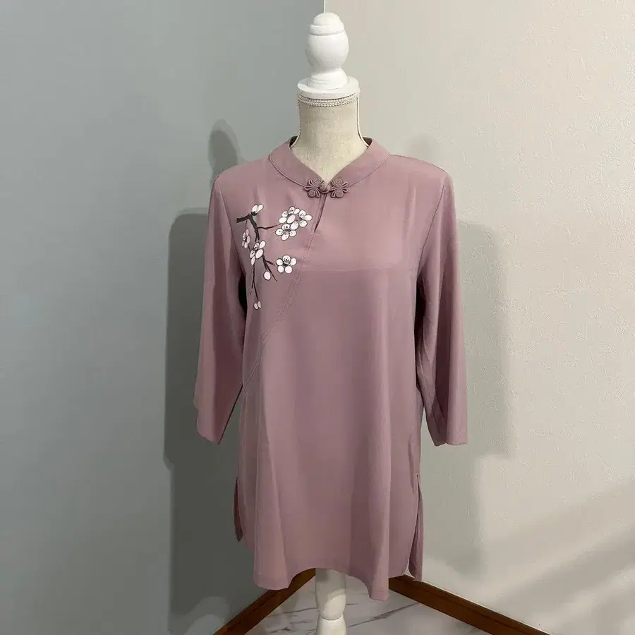 태극권 셔츠, 꽃무늬 자수 핑크 오분 소매 상의