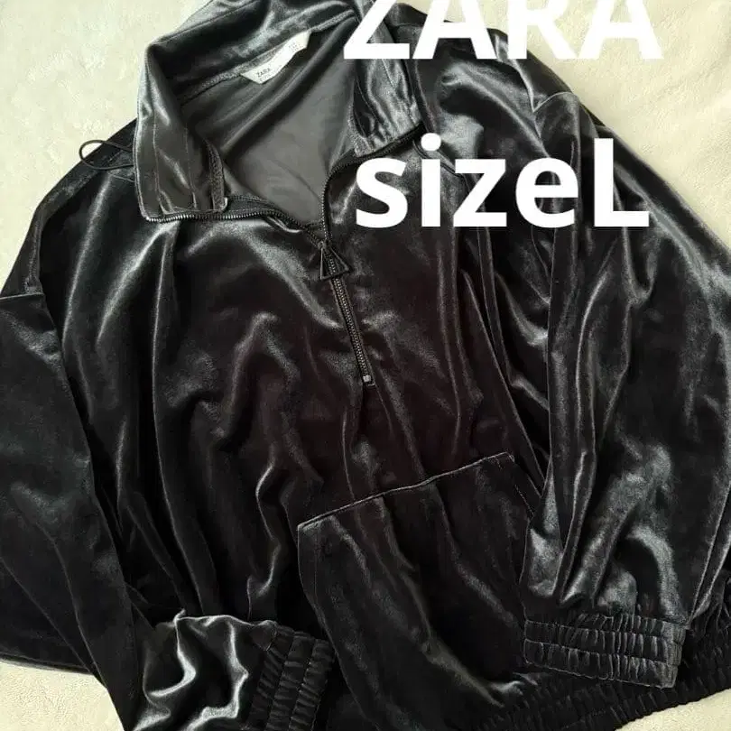 자라 벨로아 벨벳 하프 지퍼 트레이닝복 상의 L 블랙