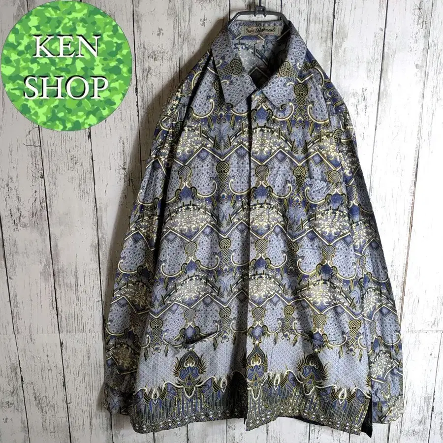 패턴 셔츠 라이트 블루 골드 디자인 올 패턴 빈티지 구제 의류