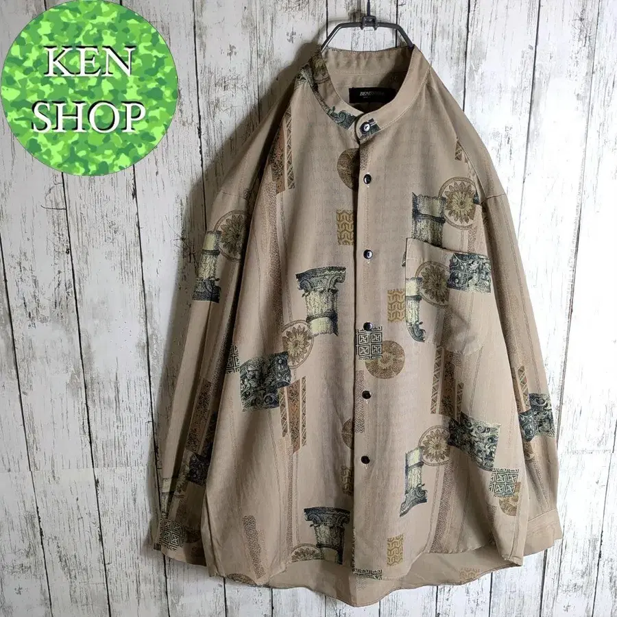 패턴 셔츠 베이지 레트로 디자인 올 패턴 빈티지 구제 의류