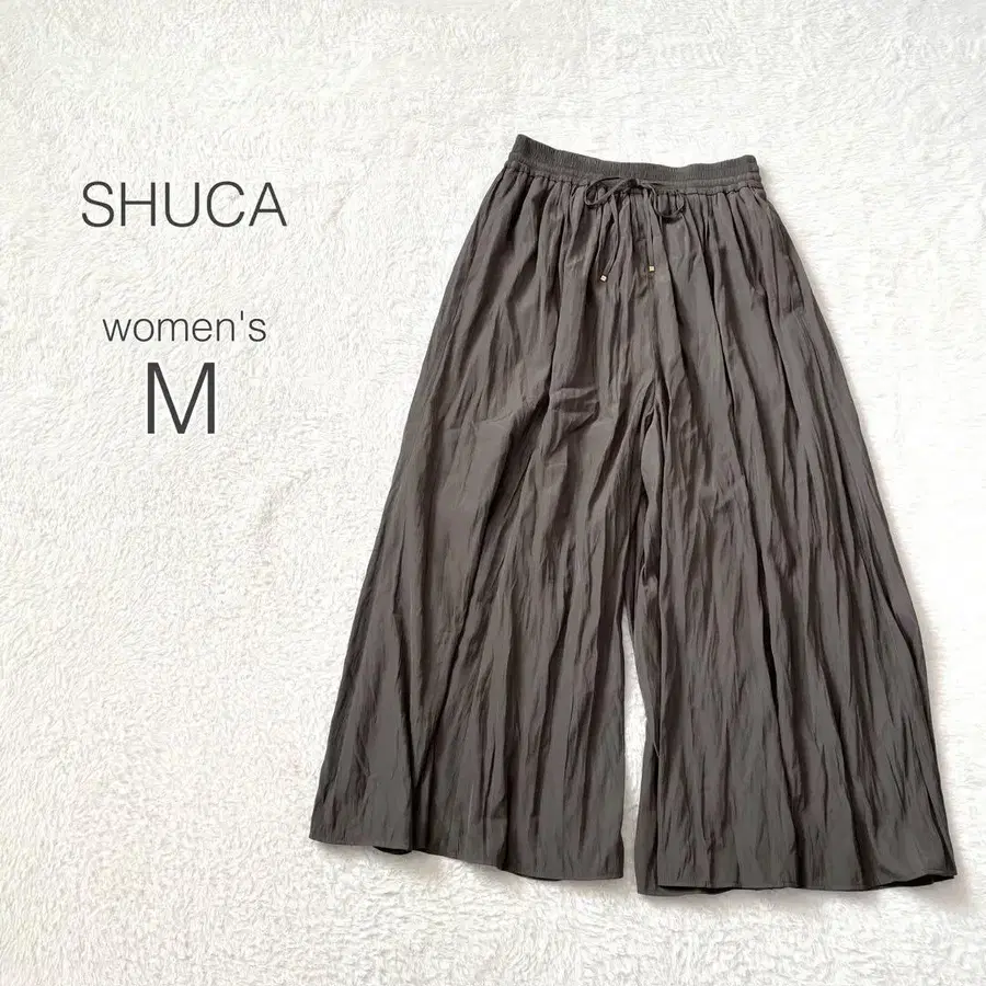SHUCA 슈카 개더 와이드 팬츠 드레이프 이지 허리밴딩 하이웨스트 부드러운 안감 있음 포켓 있음 깔끔한 캐주얼 페미닌 [ M ] 새상품급