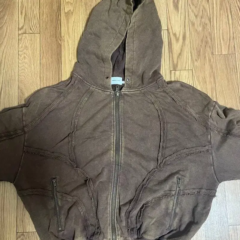 ANDER HUNK 단장 더블 지퍼 후드티 오버다이 다크 브라운