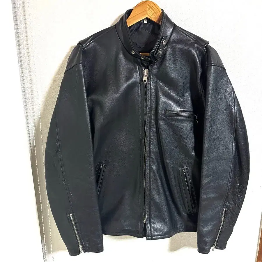 블랙 가죽 싱글 라이더 자켓