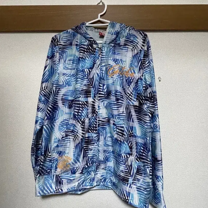 GOTCHA 파랑과 화이트 잎 패턴 후드 부착 저리 세트