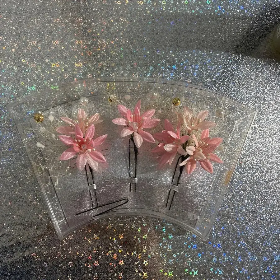 [새상품급] 핑크 꽃 머리 장식 3세트
